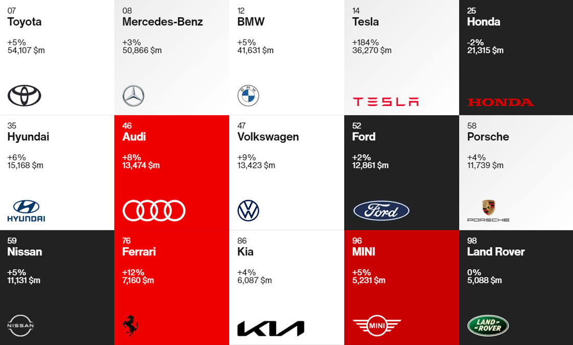 Компанія Hyundai Motor продовжує нарощує цінність та збільшує впливовість бренду. Так, відповідно до рейтингу Interbrand 2021, вартість бренду Hyundai, який зайняв 35-е місце у 2021 році, зросла на 6% у порівнянні з минулим роком, склавши 15 мільярдів 200 мільйонів доларів.