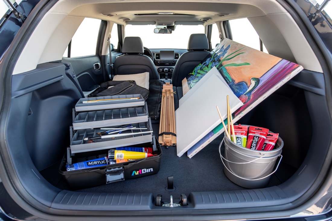 Новий Venue відрізняється продуманою архітектурою салону, в якому з комфортом розмістяться п’ятеро дорослих пасажирів. Вже в початковій комплектації автомобіль оснащений спинками задніх сидінь, що складаються в пропорції 60:40. Багажник моделі об'ємом 530 літрів легко трансформується в залежності від потреб: у нього дворівнева підлога, передбачені полки і ніші для дрібних речей.