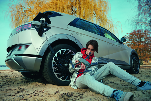 Отримайте 220 В змінного струму для живлення ваших пристроїв поза IONIQ 5 (NE1). Повністю заряджений пристрій забезпечує 3,6 кВт потужності, достатньої для роботи з великим екраном телевізора або кондиціонером середнього розміру протягом 24 годин. Просто підключіть роз’єм V2L до зарядної розетки. Фірмовий чохол в комплекті.